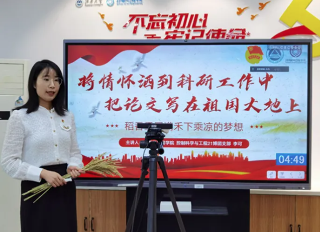 在“喜迎二十大、永远跟党走、奋进新征程”系列活动中,李可同志担任“强国有我青年说”宣讲员,她围绕“一个美丽的误会、一个挑战权威的突破、一个高尚的灵魂”三个故事走近袁隆平院士,讲述了袁老梦想的缘起和初心的坚守、求真务实和敢于创新的科研作风、心系天下和一心为民的情操。通过宣讲,李可同志号召大家脚踏实地求真学问、练真本领、做实干家,将家国情怀根植于灵魂,用智慧与双手绢绣出无愧于时代、无愧于历史、无愧于人民的绚丽篇章。值得一提的是,李可同志主讲的《稻香里写满禾下乘凉的梦想》主题微党课,受到了无锡市“锡引力·新思想——太湖讲习所”的专题报道。