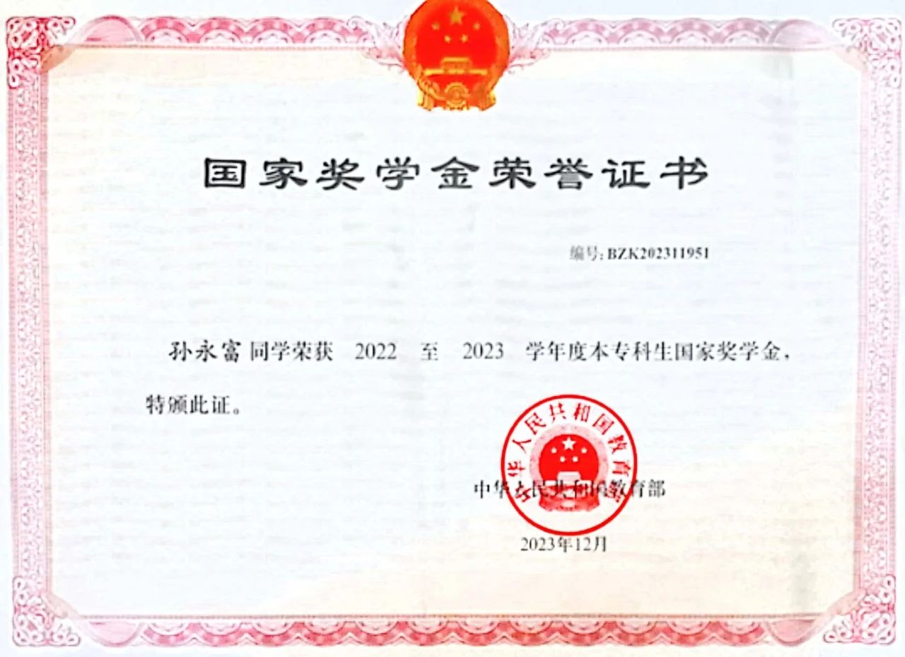 为做好他这滴水滴,孙永富以勤勉不辍的姿态,将个人的平均绩点从3.50提升至3.74,跃居专业排名的第三位。尤为值得一提的是,他在多门核心专业课程中取得了90分以上的优异成绩,更有40门课程荣获满绩。