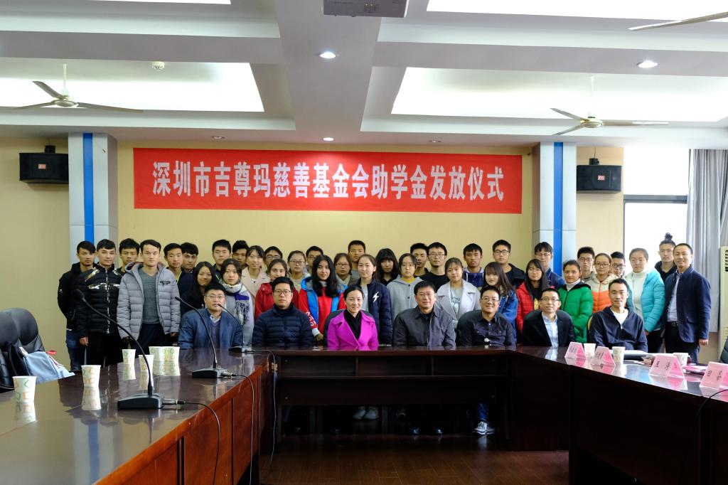 “深圳市吉尊玛慈善基金会助学金”发放仪式在物联工程学院B222会议室举行。嘉宾和受资助的学生围坐在会议室,会场气氛和睦温馨。中文无码