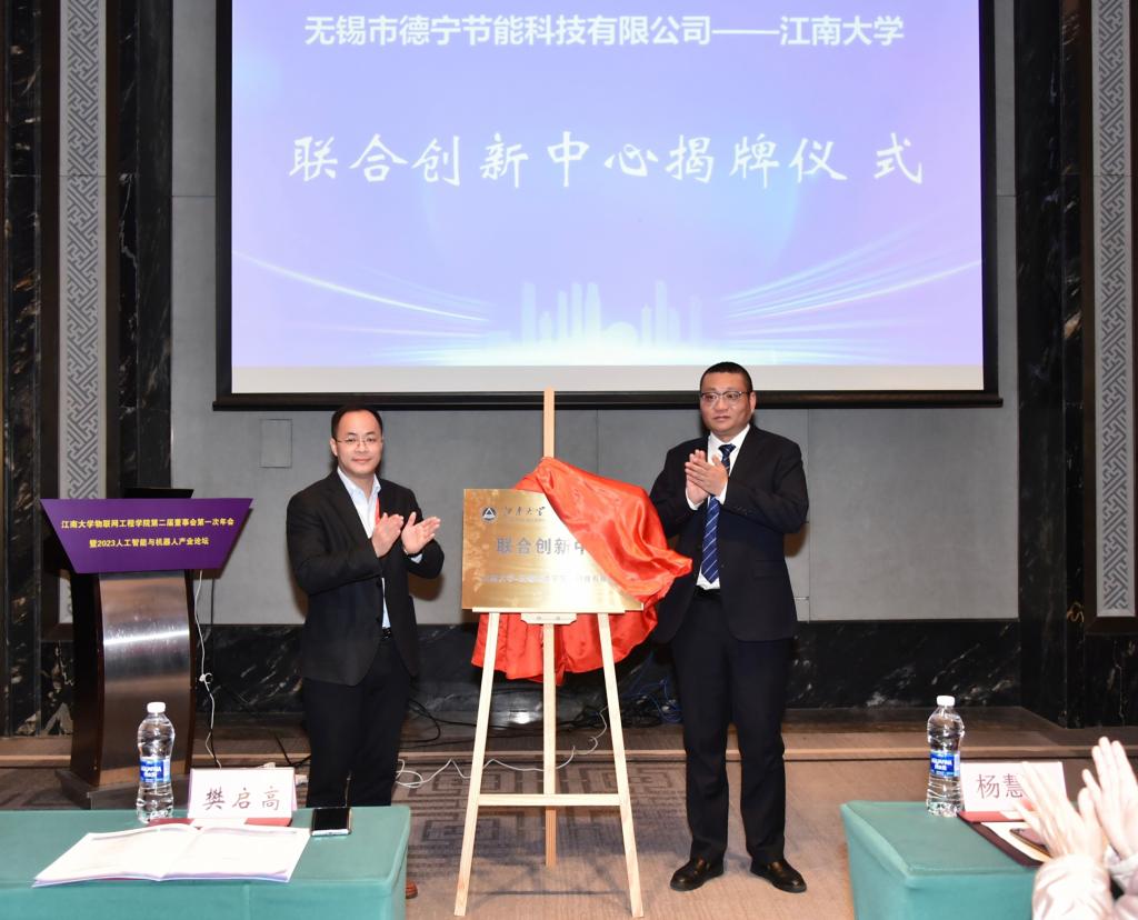 将不负协会与企业的期望,依托学院电子信息学科和省部级科研平台集中优势,在中心联建、课题联研、人才联培等方面进一步产出成果。随后,无锡市德宁节能科技有限公司董事长唐逸先生与樊启高共同为联合创新中心揭牌。
